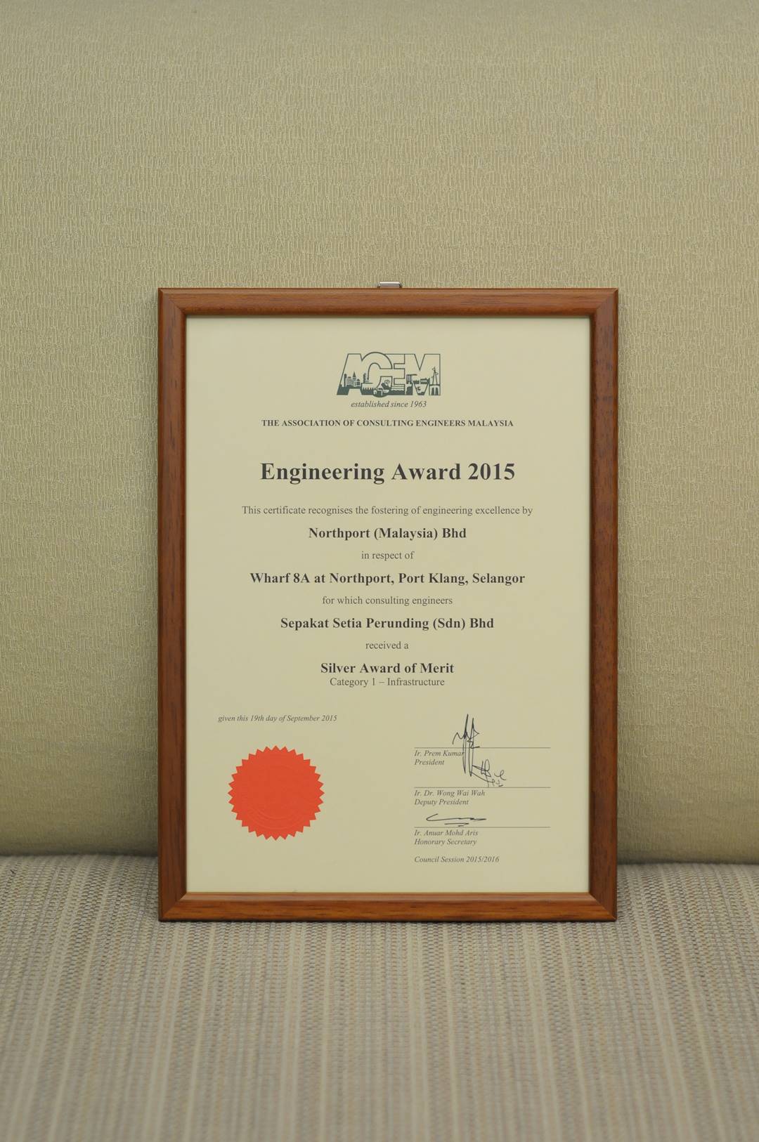 Award of Merit (Category 1 infrastructure) in 52nd Anniversary Dinner and Engineering Award 2015.