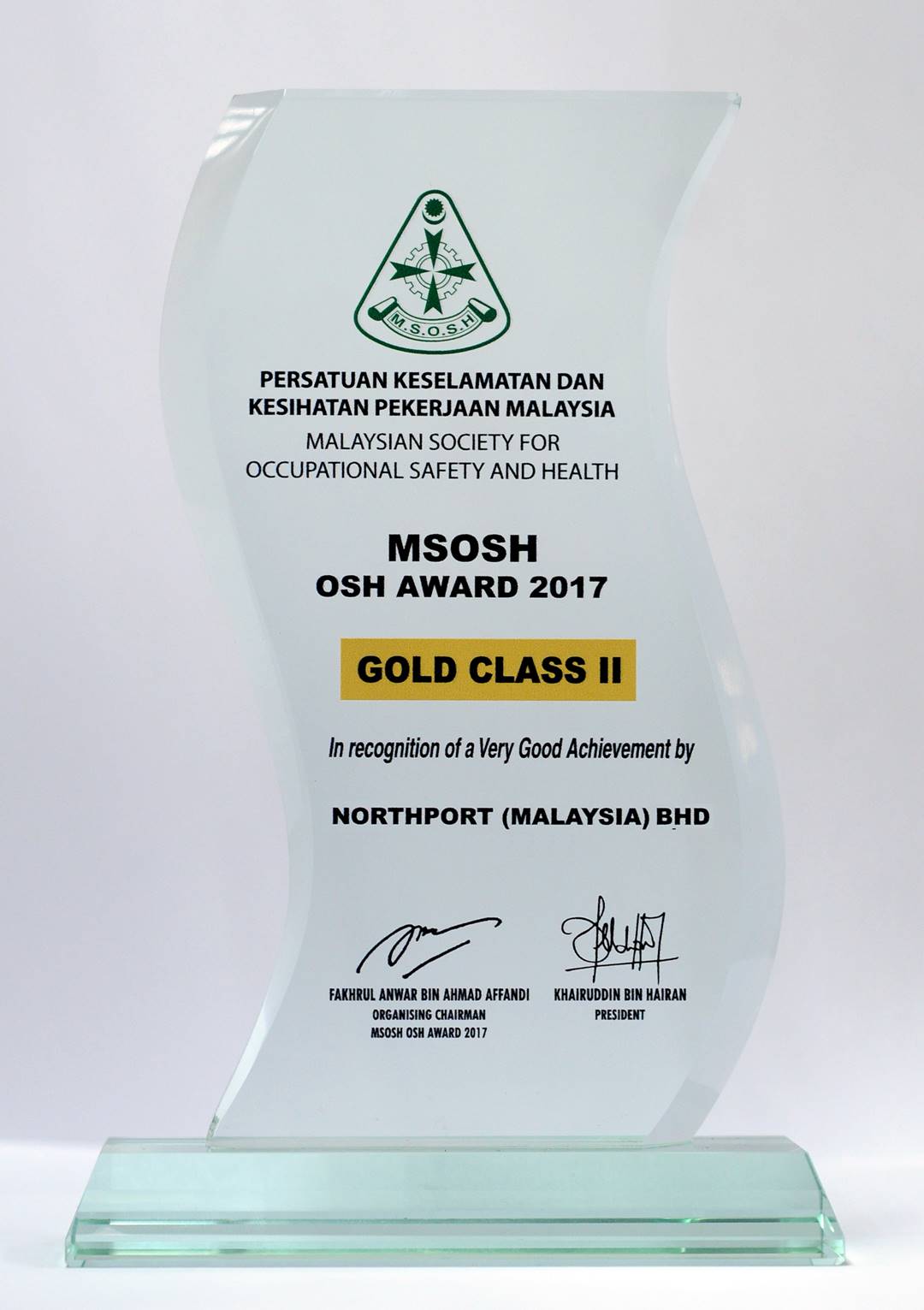 Malaysian Society for Occupational Safety and Health (MSOSH) Gold Award 2017 (Class 2) (Logistics & Transportation Category).