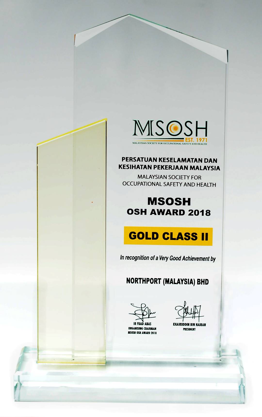 Malaysian Society for Occupational Safety and Health (MSOSH) Gold Award 2018 (Class 2) (Logistics & Transportation Category).